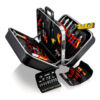 - Osnovna fioka može se zakočiti pritiskom dugmeta, visine je 70 mm i može se razdeliti umecima. Pokrovna ploča ima 13 džepova za alat.