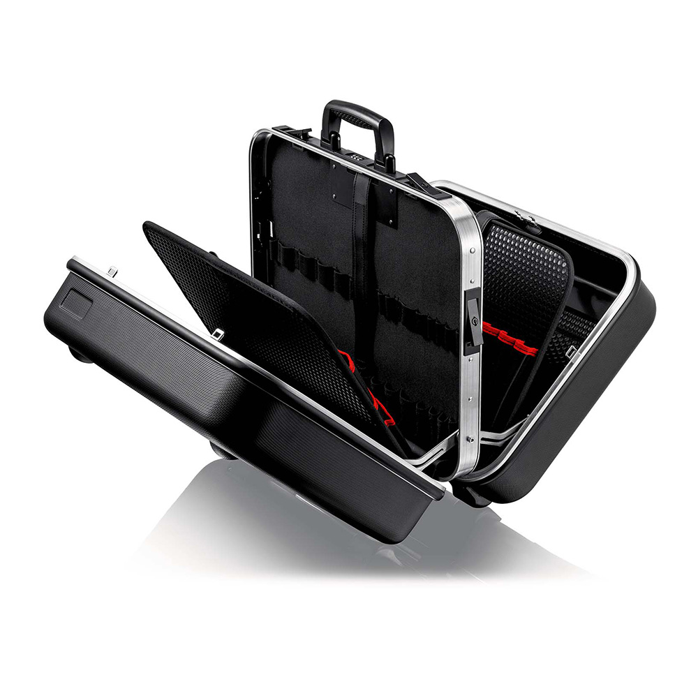 - Polica za dokumente na izvlačenje i alatni panel na izvlačenje izrađeni od dvostruke poliprotesterenske ploče koja ne privlači prljavštinu sa 13 alatnih torbica