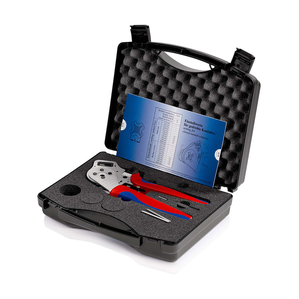 - Klešta u plastičnom kućištu sa umetkom od pene i standardnim lokatorom za precizno pozicioniranje kontakata