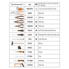 Kofer ima pregradu sa elastičnim trakama za alat i mekani termoformat uložak ugrađen u unutrašnje dno