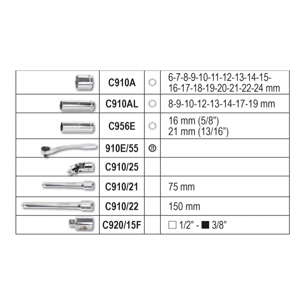 Komplet nasadnih ključeva 3/8″ sa priborom u plastičnoj kutiji.